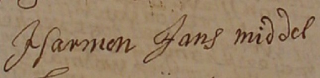 In 1738 wordt in de archieven van Wildervank gesproken over ene "Middel Harm", die nog een lening van f 50,- heeft uitstaan, waarover op Allerheiligen 1737 al 5 jaar lang geen rente meer was betaald. De toenaam Middel was dus al bekend in 1732. Harmen Jans ondertekent in 1741 voor het eerst met de achternaam Middel.